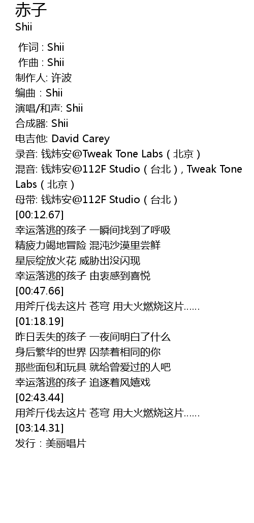 | [05:09.356] | 混音: 钱炜安@112F Studio(台北), Tweak Tone Labs(北京) |