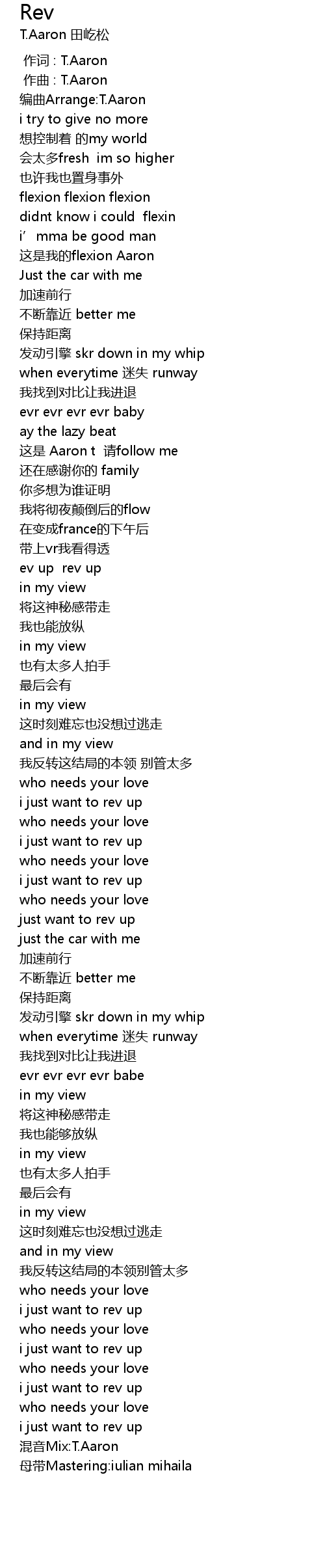 | [00:00.000] | 作词 : T.Aaron |