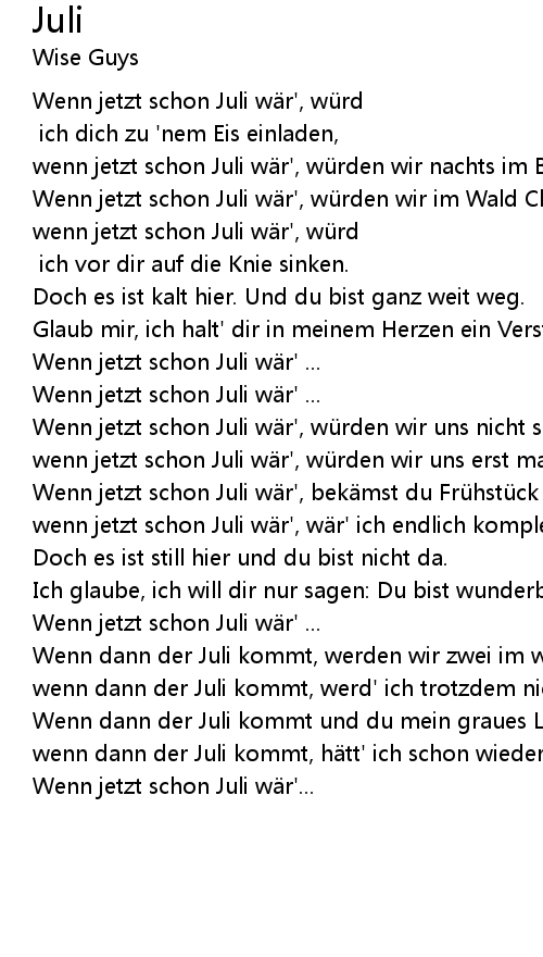 | Wenn jetzt schon Juli w r', wü rden wir uns nicht schreiben mü ssen, | |