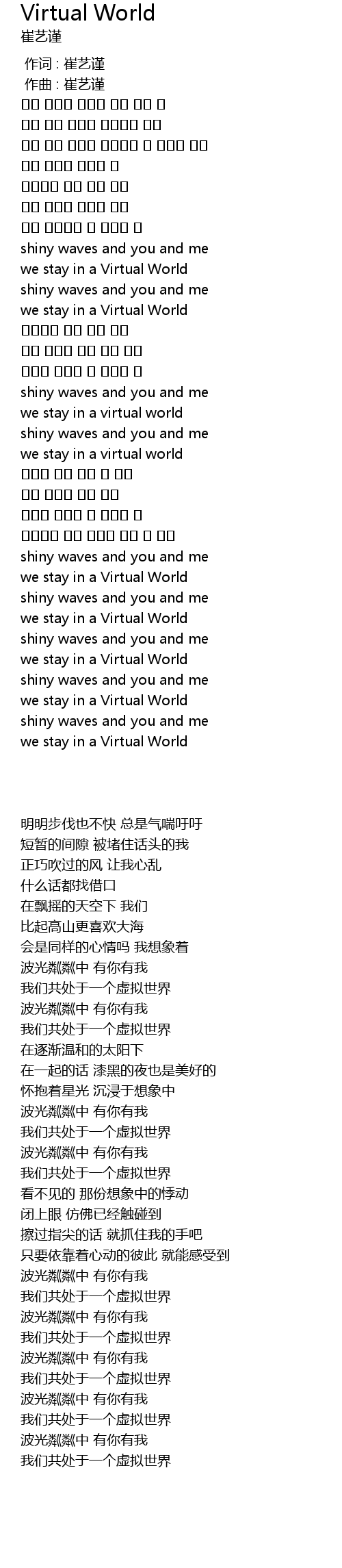 | [00:00.000] | 作词 : 崔艺谨 |