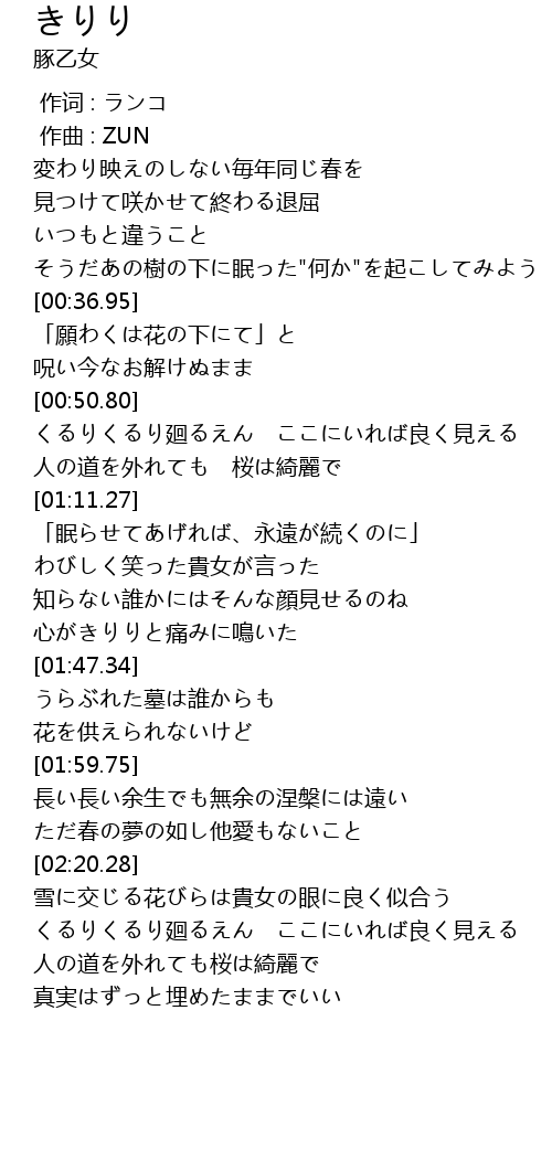 | [01:01.04] | 人の道を外れても 桜は綺麗で |