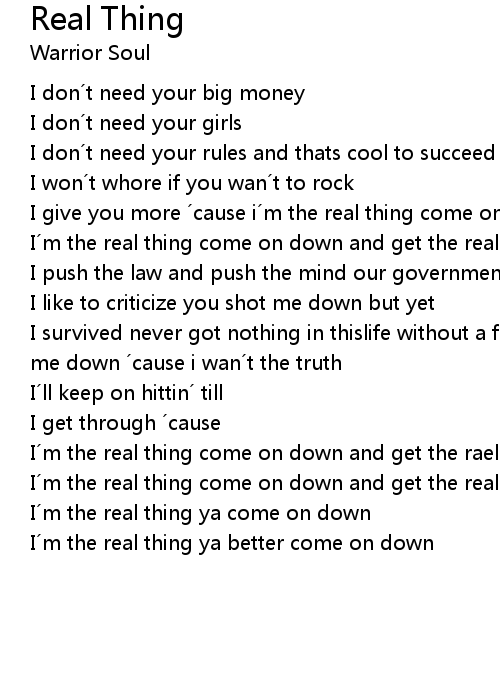 | I give you more cause i m the real thing come on down, and get the real thing | |