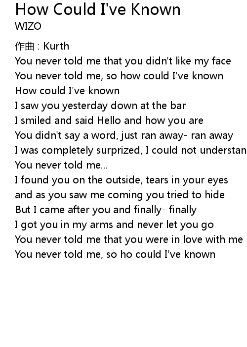 | You never told me, so ho could I' ve known |