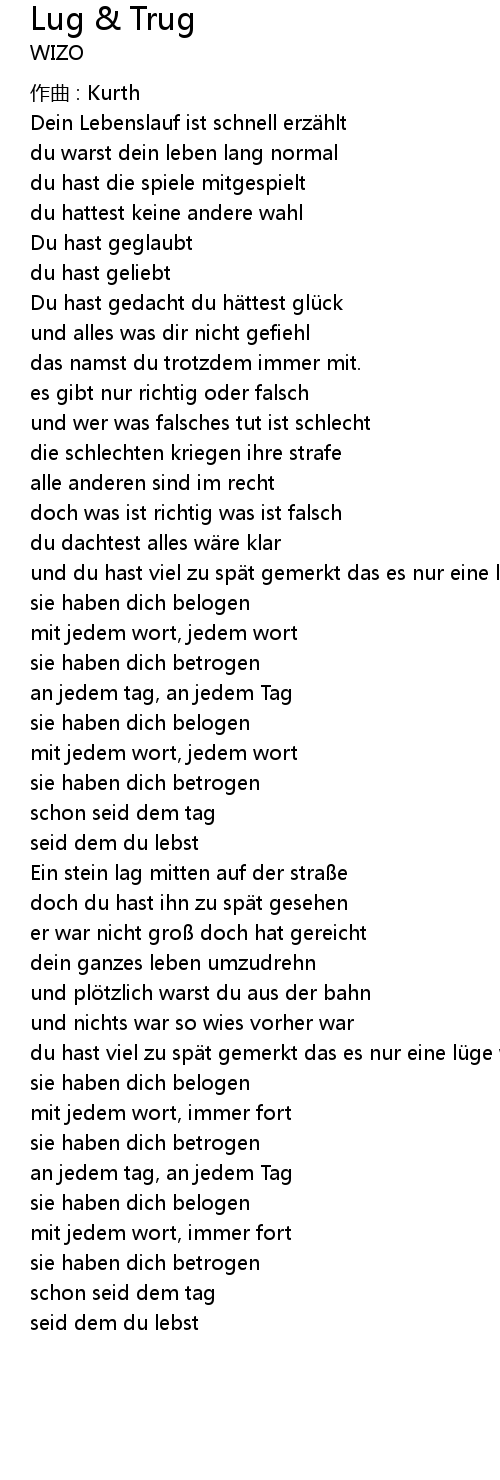 | du hast viel zu sp t gemerkt das es nur eine lü ge war | |