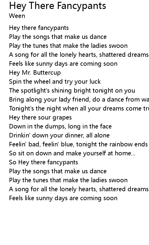 | So Hey there fancypants | |