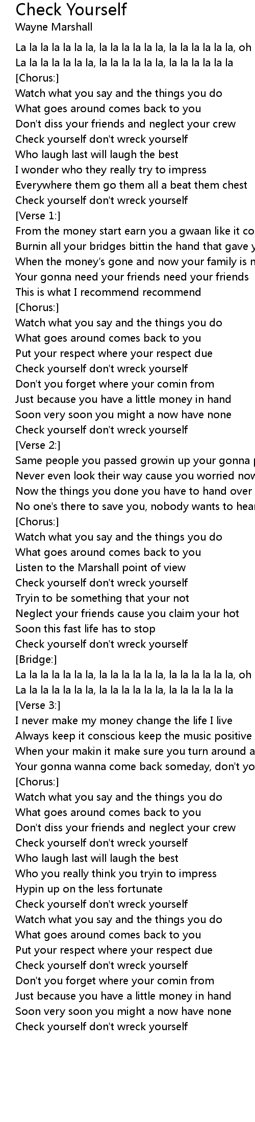 Check yourself don't wreck yourself |
