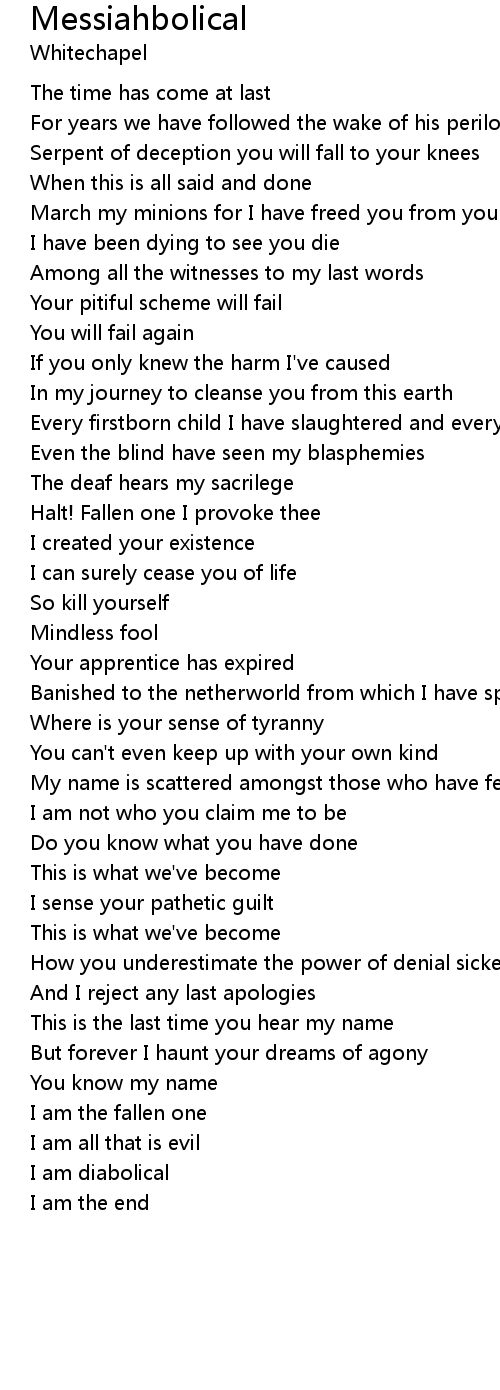 Every firstborn child I have slaughtered and every virgin I have defiled |