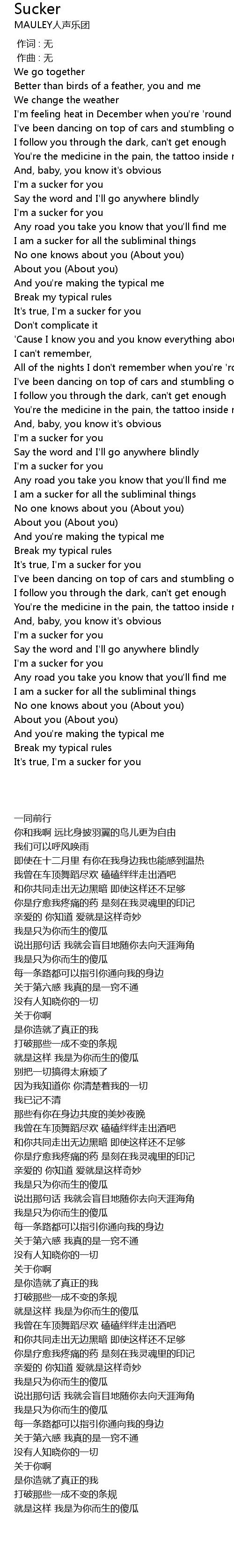 | [01:54.210] | It' s true, I' m a sucker for you |