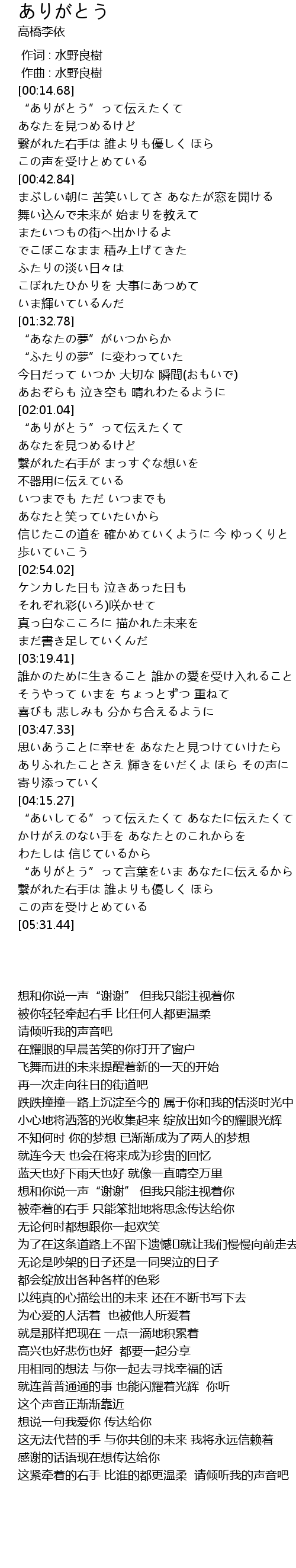 | [00:00.00] | 作词 : 水野良樹 |