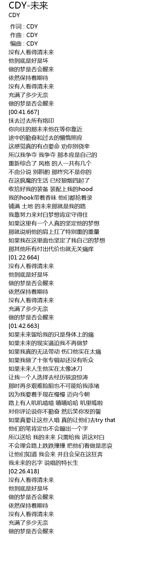 | [00:01.000] | zuo qu : CDY |
