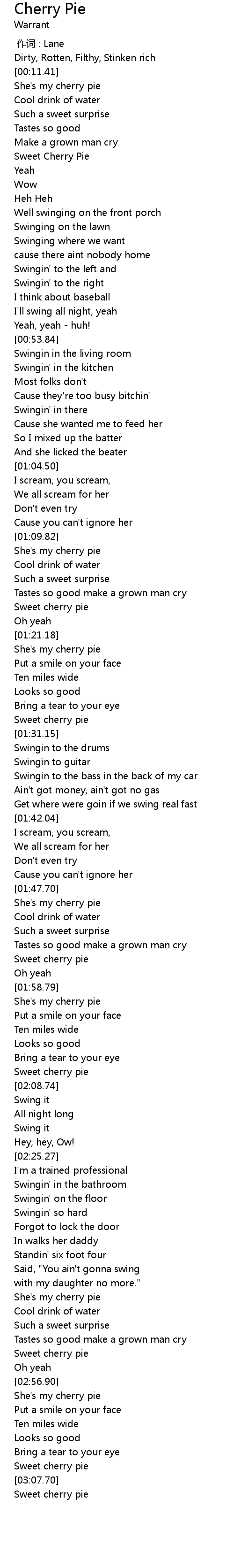 | [02:57.18] | She's my cherry pie |