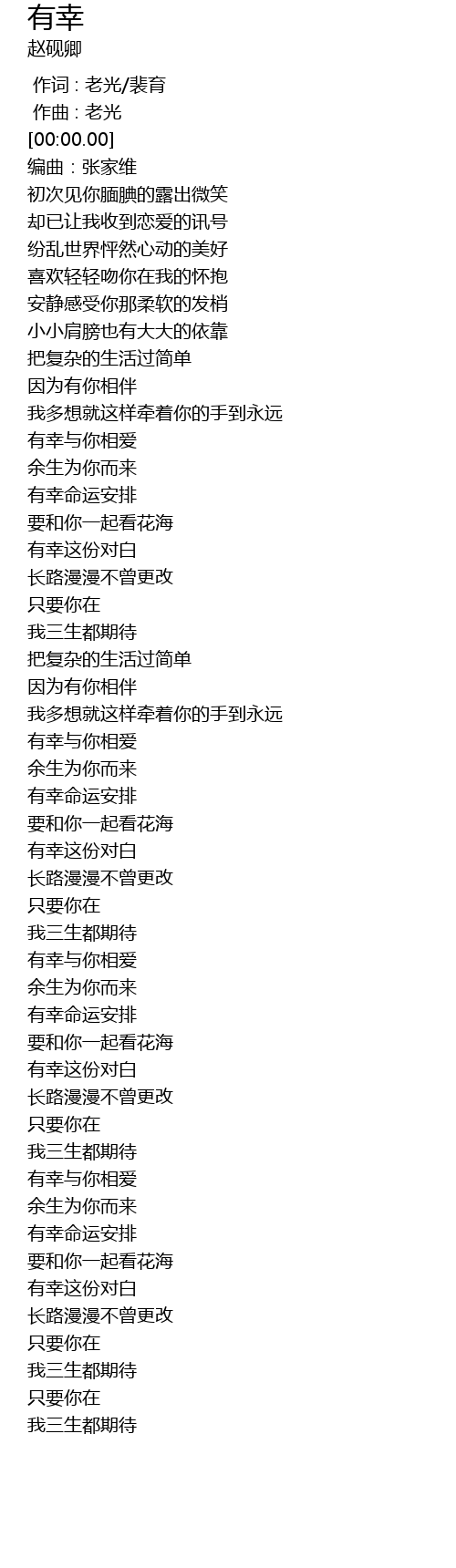 | [02:33.319] | 有幸与你相爱 |