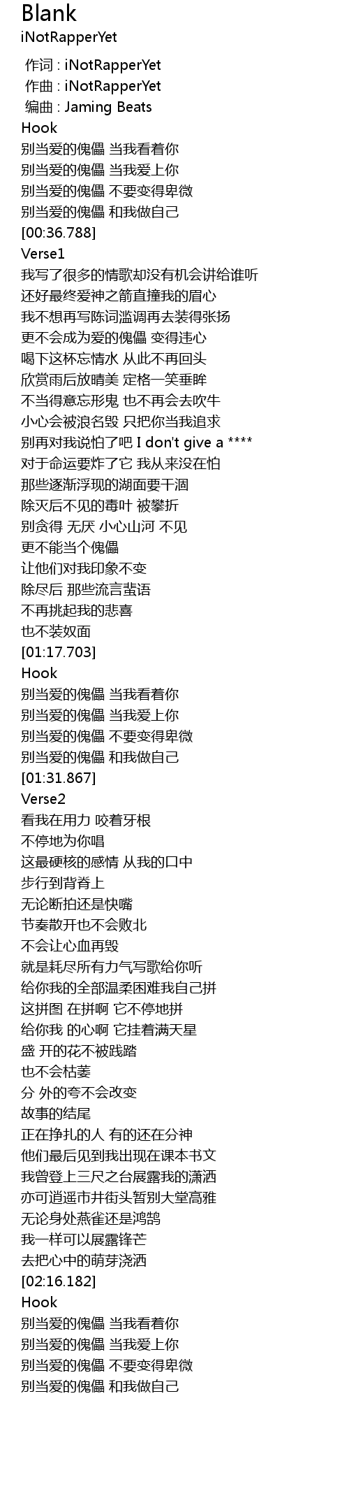 | [00:01.000] | zuo qu : iNotRapperYet |
