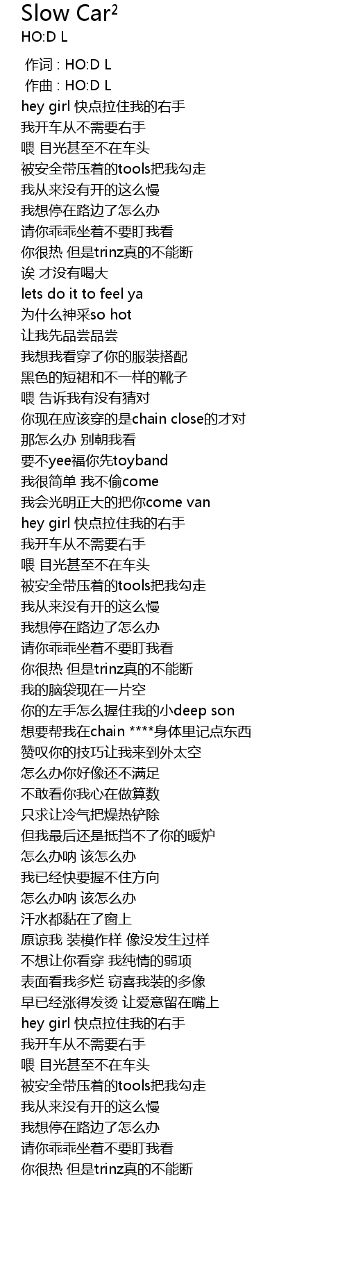 | [00:00.000] | 作词 : HO:D L |