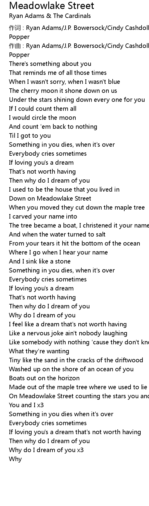 | 作词 : Ryan Adams/J.P. Bowersock/Cindy Cashdollar/Brad Pemberton/Catherine Popper | |