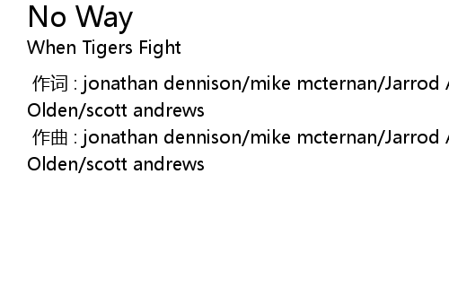 | [00:00.00-1] | 作词 : jonathan dennison/mike mcternan/Jarrod Alexander/Ken Olden/scott andrews |