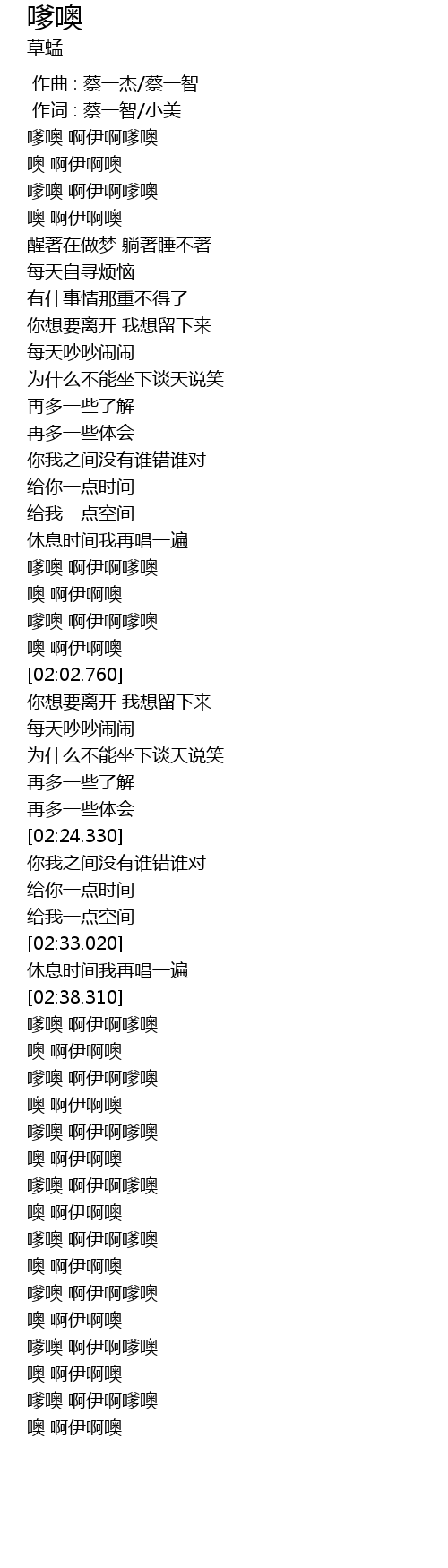 | [03:04.960] | 嗲噢 啊伊啊嗲噢 |
