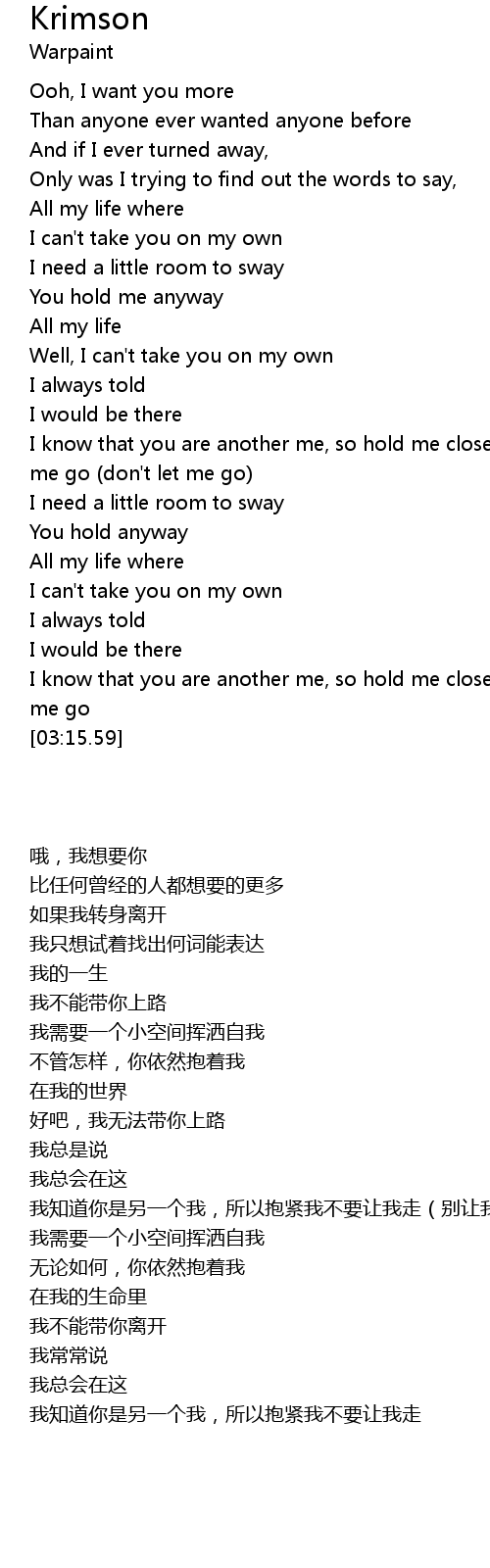 I know that you are another me, so hold me closer and don't ever let me go (don't let me go) |