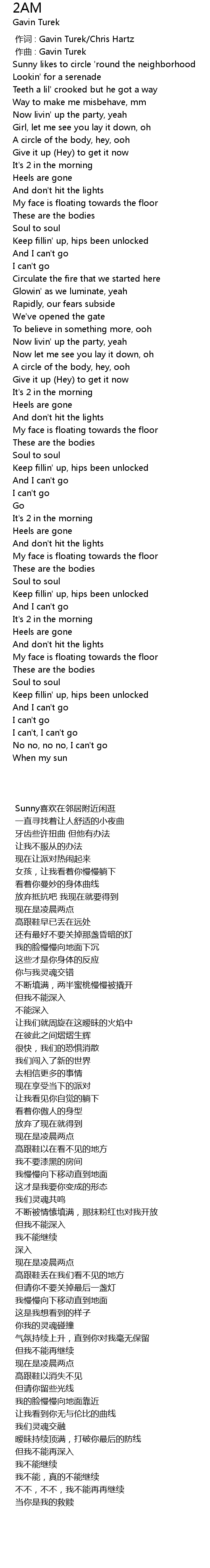 | [00:00.00] | zuò cí : Gavin Turek Chris Hartz |
