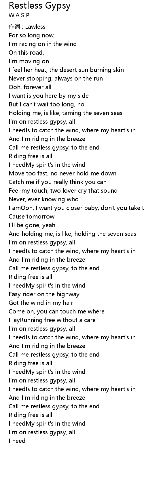 | I' m on restless gypsy, all | |