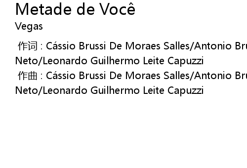 | [00:00.00-1] | 作词 : Cássio Brussi De Moraes Salles/Antonio Bruno Montoro Neto/Leonardo Guilhermo Leite Capuzzi |