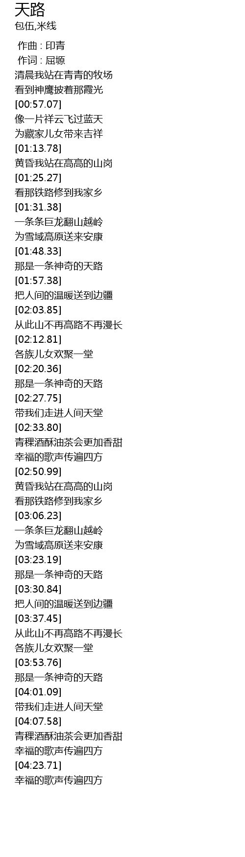 | [01:41.07] | 为雪域高原送来安康 |
