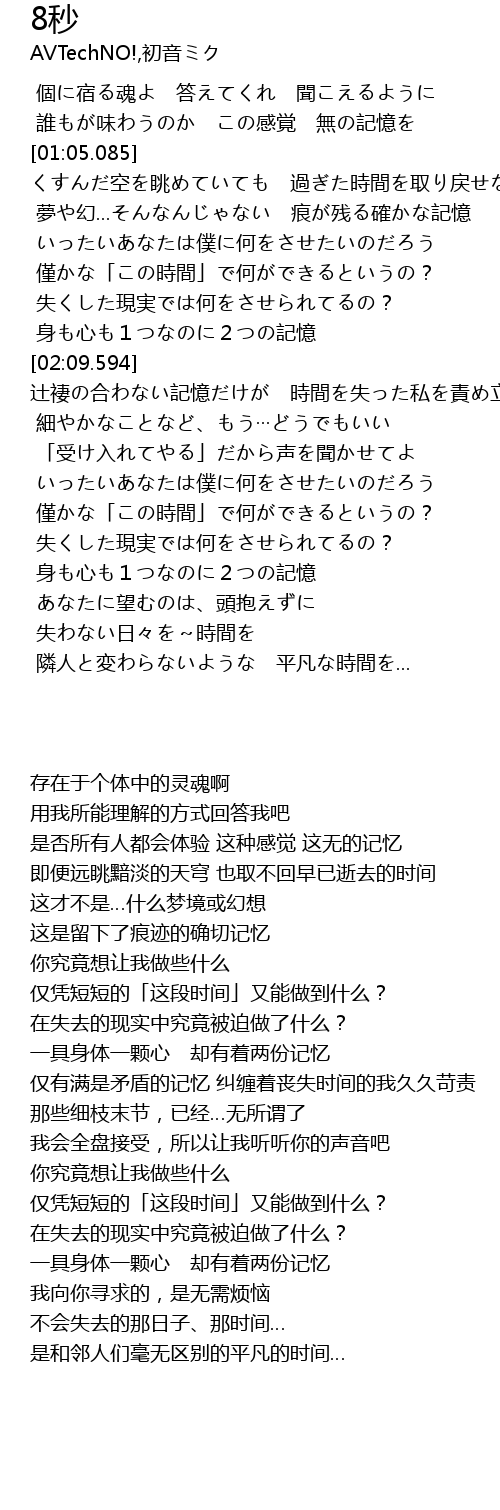 | [01:45.326] | 身も心も1つなのに2つの記憶 |