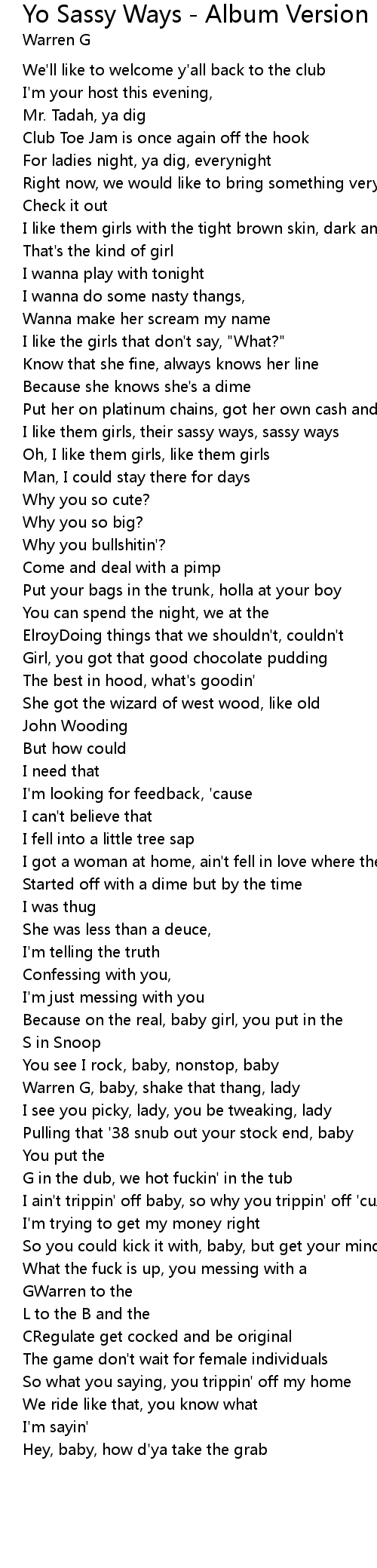 Warren G, baby, shake that thang, lady |