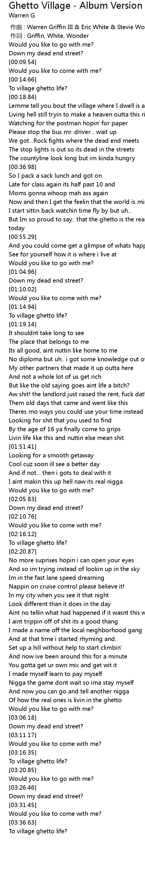 | [03:00.07] | Of how the real ones is livin in the ghetto |