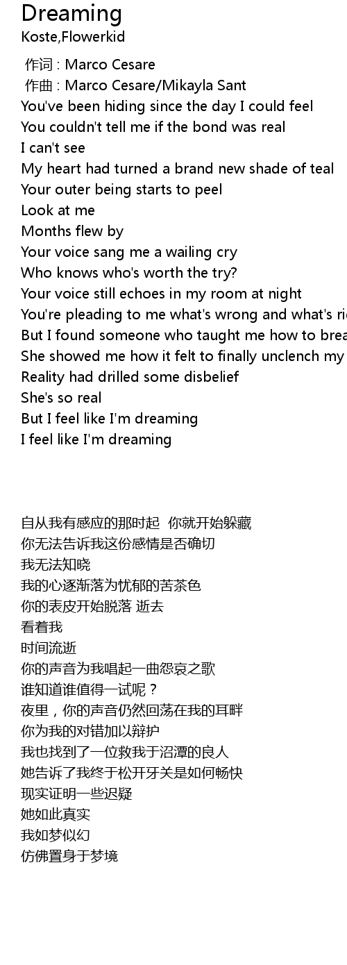 | [00:01.00] | 作曲 : Marco Cesare/Mikayla Sant |