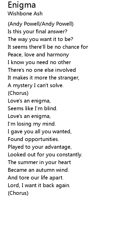Enigma 歌词