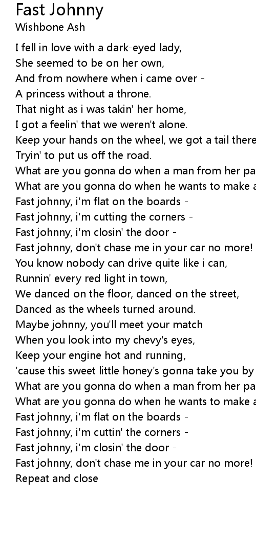 Fast johnny, i'm cuttin' the corners - |