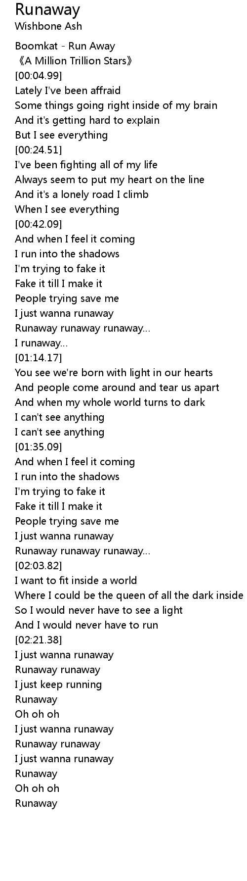 | [01:00.11] | Runaway runaway runaway |