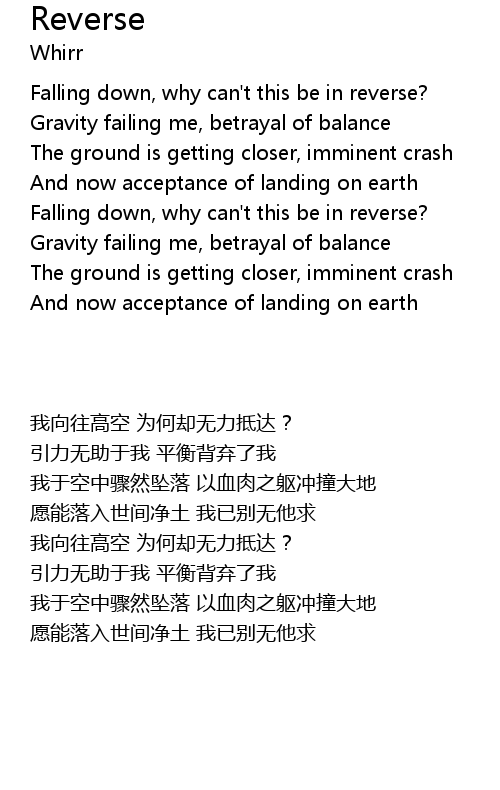| [02:47.12] | 我于空中骤然坠落 以血肉之躯冲撞大地 |