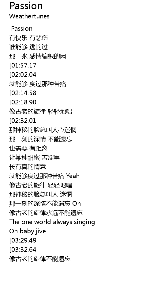 | [03:20.86][03:29.49] | Passion Passion |