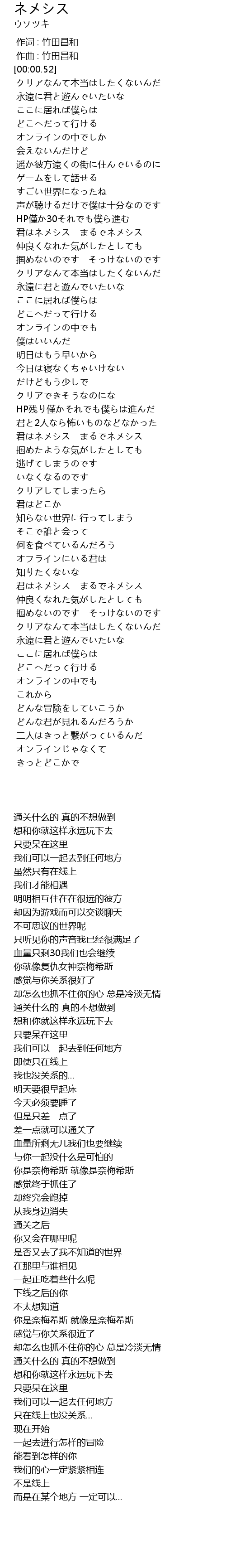 | [01:53.80] | 君はネメシス まるでネメシス |