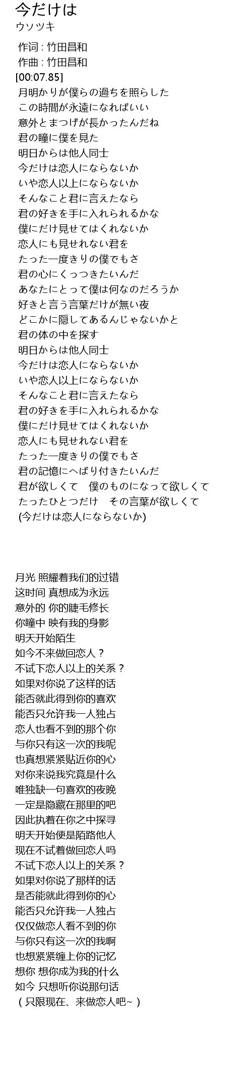 | [03:59.38] | (只限现在、来做恋人吧~) |