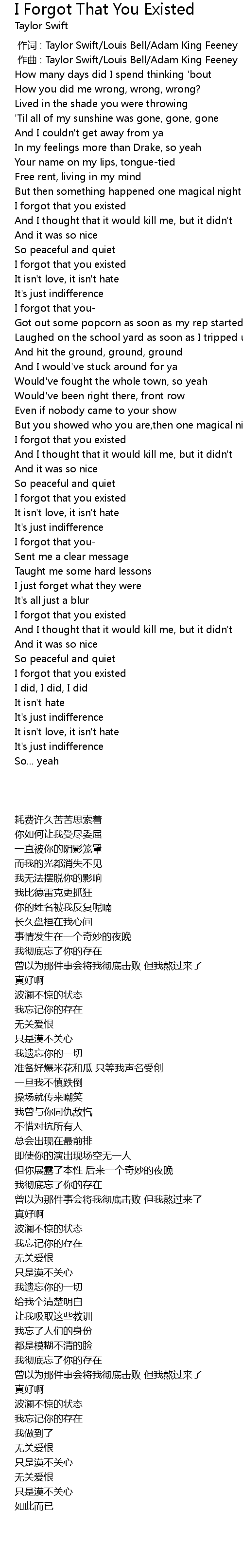 | [00:01.00] | 作曲 : Taylor Swift/Louis Bell/Adam King Feeney |