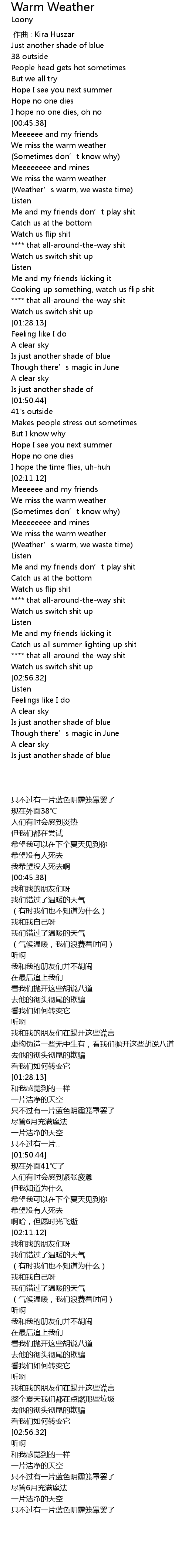 | [02:32.38] | (气候温暖,我们浪费着时间) |