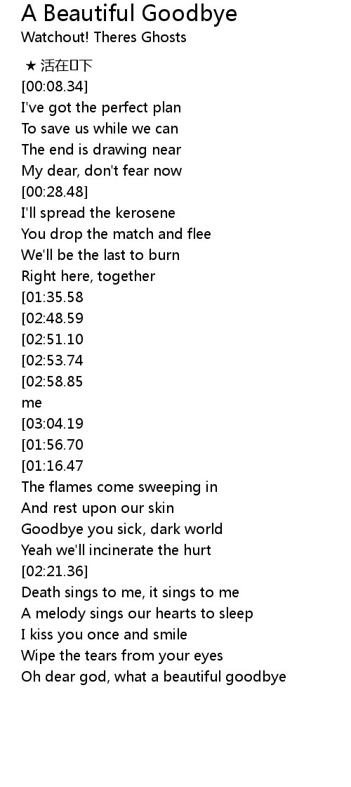 | [02:38.82] | Oh dear god, what a beautiful goodbye |