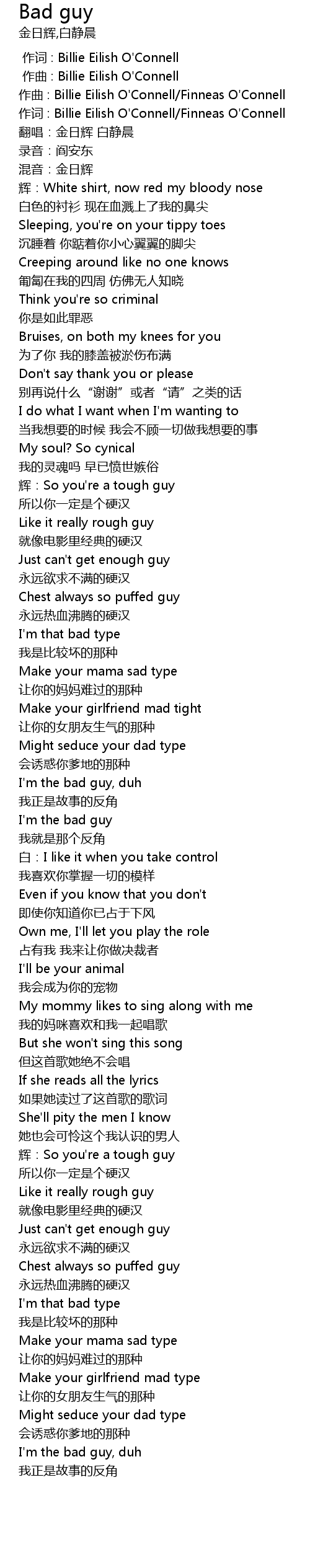 | [00:00.000] | zuò cí : Billie Eilish O' Connell |
