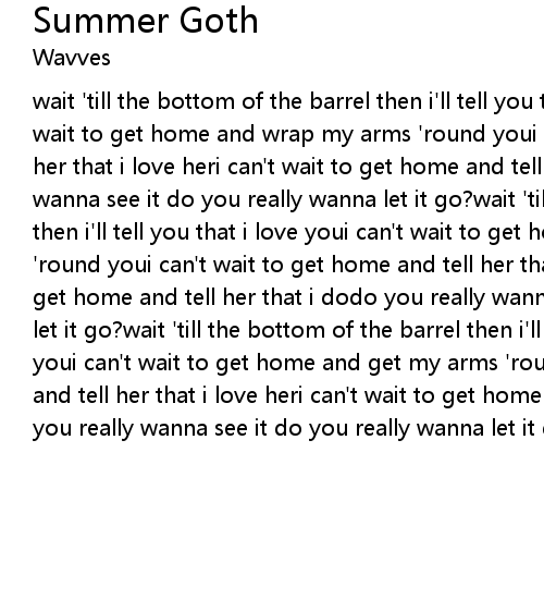 | wait 'till the bottom of the barrel then i'll tell you that i love youi can't wait to get home and wrap my arms 'round youi can't wait to get home and tell her that i love heri can't wait to get home and tell her that i dodo you really wanna see it do you really wanna let it go?wait 'till the bottom of the barrel then i'll tell you that i love youi can't wait to get home and wrap my arms 'round youi can't wait to get home and tell her that i love heri can't wait to get home and tell her that i dodo you really wanna see it do you really wanna let it go?wait 'till the bottom of the barrel then i'll tell you that i love youi can't wait to get home and get my arms 'round youi can't wait to get home and tell her that i love heri can't wait to get home and tell her that i dodo you really wanna see it do you really wanna let it go? |