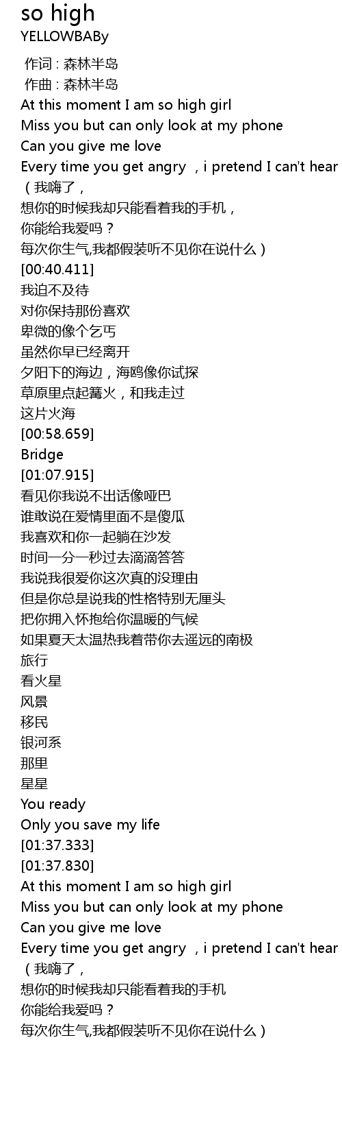 | [01:39.835] | At this moment I am so high girl |
