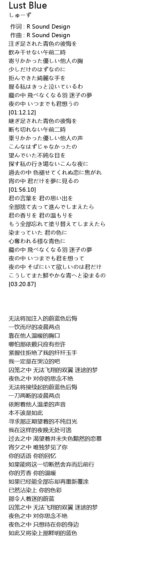 | [00:01.00] | zuò qǔ : R Sound Design |
