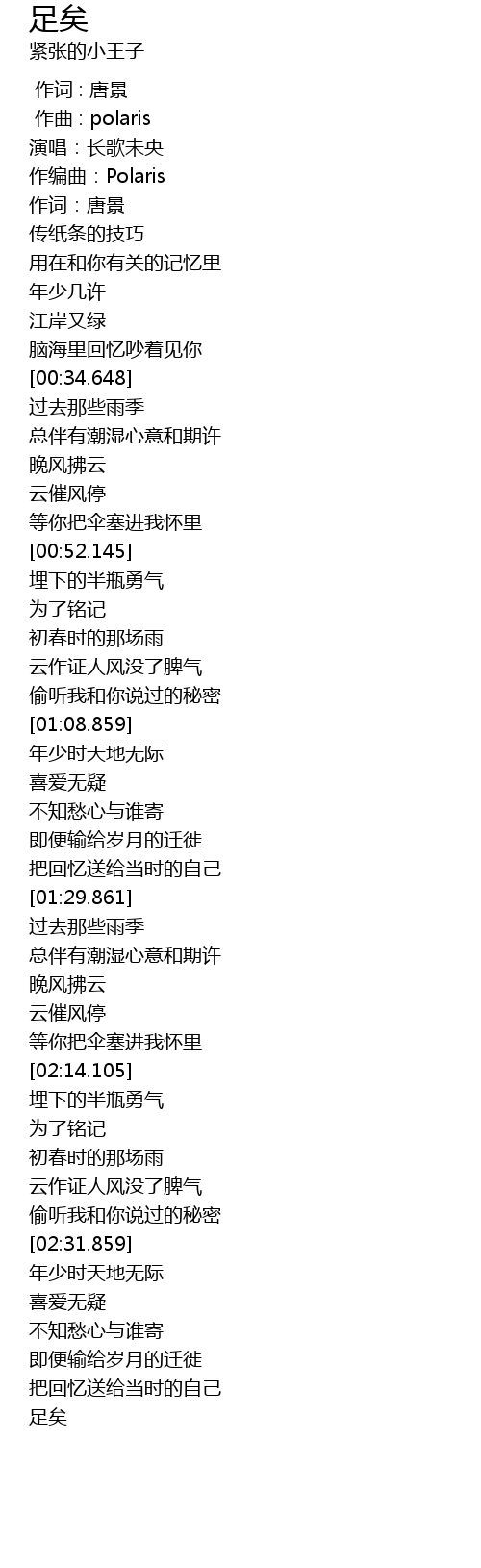 | [00:10.938] | 作编曲:Polaris |