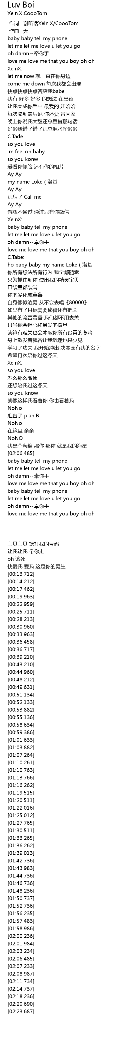 | [01:10.763] | ho baby baby my name Loke luò jī |