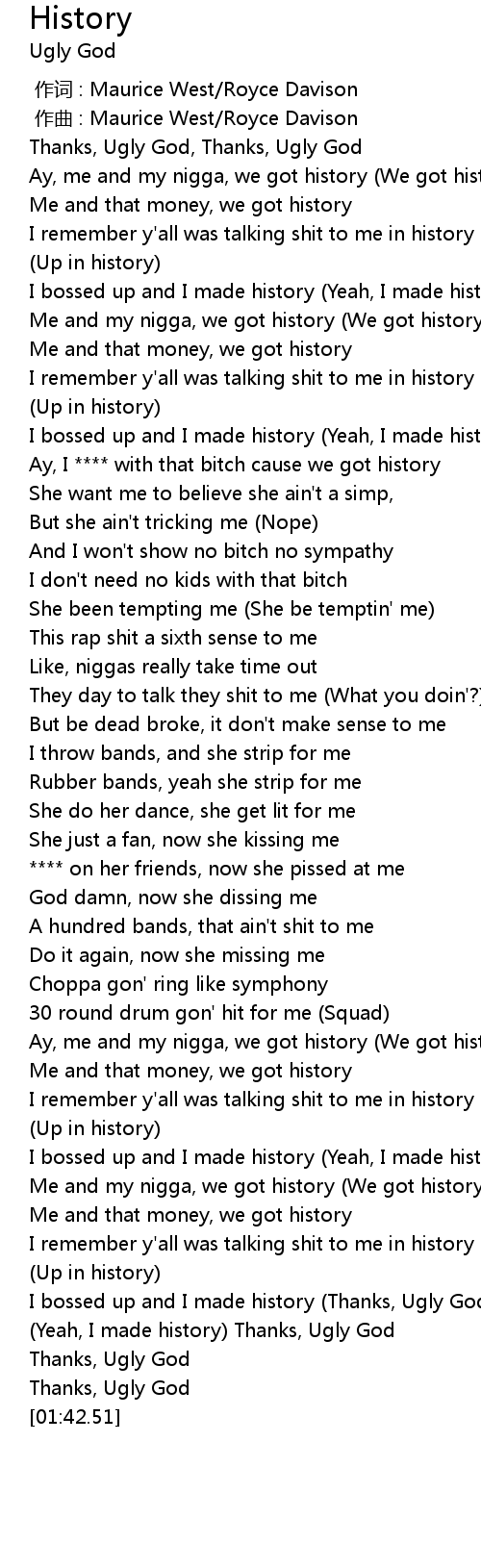 | [01:37.55] | (Yeah, I made history) Thanks, Ugly God |