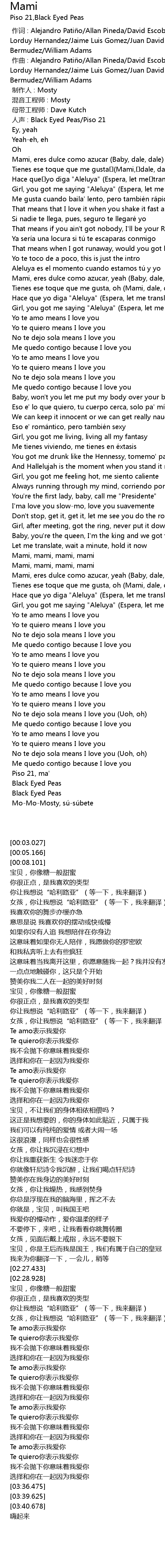 | [02:28.928] | Mami, mami, mami, mami |