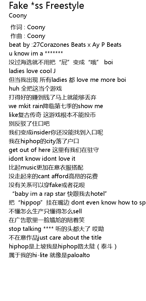 | 歌曲 | Fake *ss Freestyle |