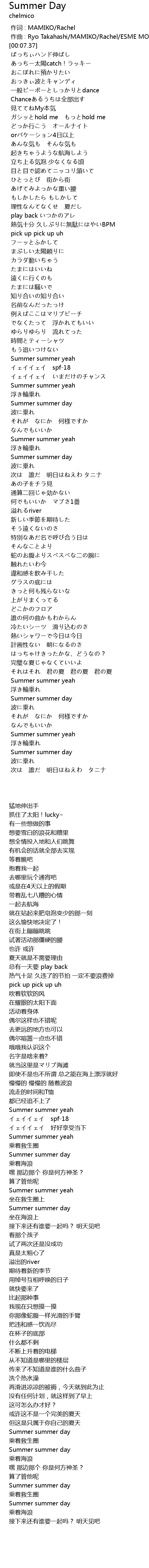 | [01:38.20] | Summer summer day |